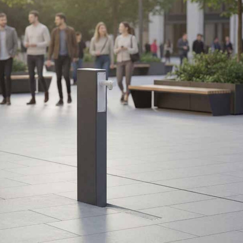 En stilren og enkel vannstasjon som kombinerer funksjon, holdbarhet og tidløst design. Gir brukerne enkel tilgang til friskt vann og løfter kvaliteten på park, skolegård eller idrettsanlegg – et bærekraftig og inkluderende tilbud for alle.