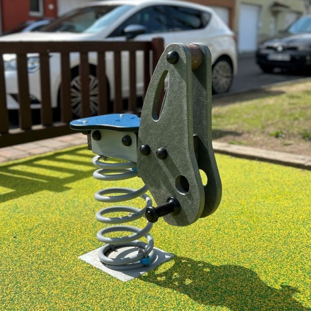 En klassisk vippe i moderne, miljøvennlig design. Lekeelementet består av en kraftig fjær og en stilisert figur i resirkulert plast. Designet gir både stabilitet og høy lekeverdi – ideelt for parker, barnehager og lekeområder med fokus på bærekraft og lang levetid.