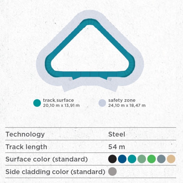 Ønsker du plantegning, arealbehov og budsjett for trekantet pumptrack 54 m tilpasset ditt prosjekt?