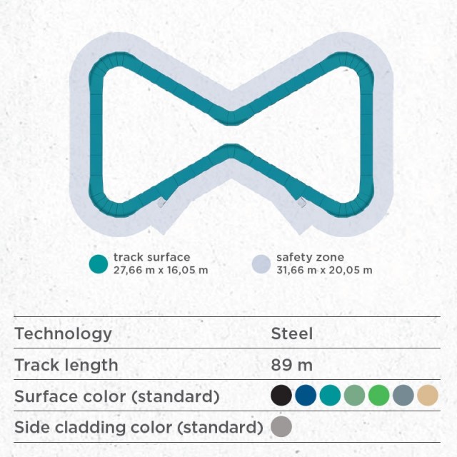 Banens størrelse og geometri gir både trygg mestring for nybegynnere og teknisk utfordring for mer erfarne brukere.