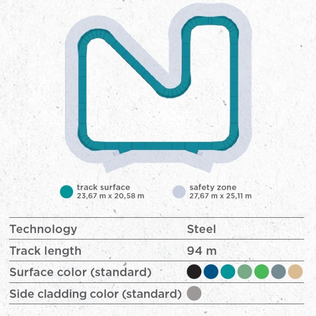 Kan leveres i flere standard farger slik at pumptracken harmonerer med park, skolegård eller byrom – eller fremstår som et tydelig aktivitetspunkt.