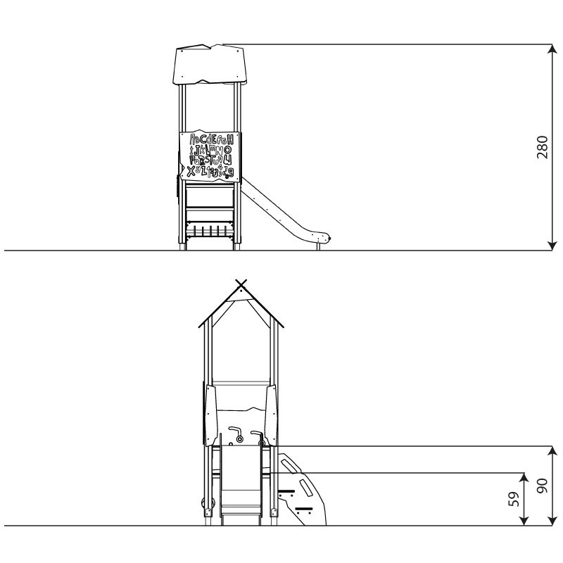 Tårn sklie og sanse opplevelser for de mindre barna i serien Wooden som er flotte klassiske lekeapparater med smarte løsninger og fokus på universell utforming.