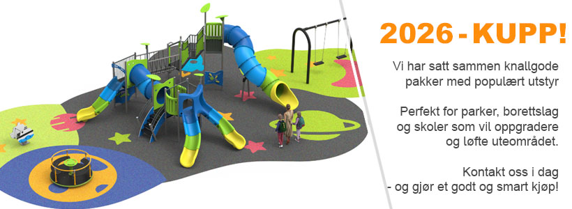 Nå har du mulighet til å gjøre en smart investering i utemiljøet – til en svært gunstig pris. Våre lekeplasspakker inneholder utvalgte kvalitetsprodukter som er sertifisert EN 1176 og tilpasset norsk klima, og som gir mye lek og aktivitet for pengene.