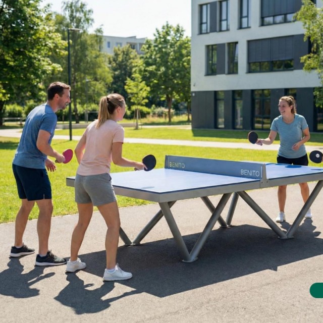 Utstyr som bordtennis, fotballbord (Futtoc) og utendørs sjakk gir aktivitet for alle aldersgrupper.