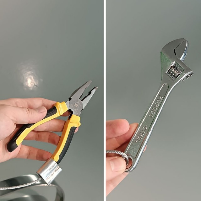 Alle verktøy er av høy kvalitet og sikret med galvaniserte stålkabler for lang levetid og beskyttelse mot tyveri.