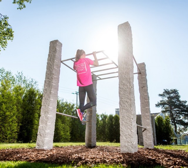 Step-kasser kan brukes til en rekke øvelser og innbyr også større grupper til å ta ibruk parken. I denne Bauta modellen med 4 søyler kan man trene hele 8 personer samtidig + step-kassene.