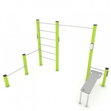 Skilt med instruksjoner i aluminium skrudd til HDPE plate, motstandsdyktig mot værforhold. på skiltet er også en QR kode som peker til en film med eksempel på øvelse. De store sammensatte modulene vil ha flere slike skilt med flere eksempler på øvelser. Det kan også suppleres med et større hovedskilt.