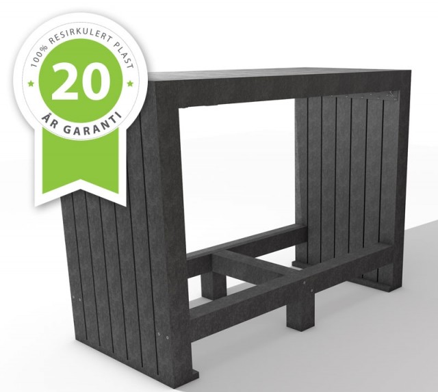 Stilrent høyt barbord som er produsert utelukkendes av plastavfall og er igjen 100% resirkulerbart. Kombiner bordet med andre produkter i denne serien "Calero"